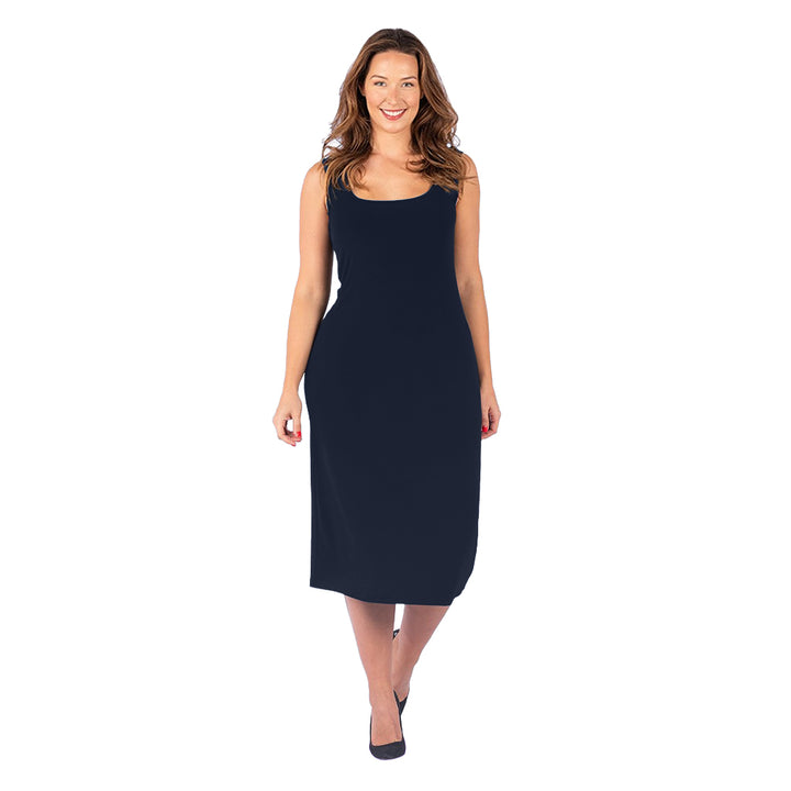 Step out in effortless style with this Essential Soft Knit Midi Tank Dress. Designed for a flattering, figure-hugging fit, this dress skims your curves from the classic scoop neckline down to a sophisticated midi length. Made from an incredibly soft and stretchy knit fabric, it offers both exceptional style and all-day wearability and comfort. The simple, sleeveless tank design makes it an incredibly versatile piece—perfect for layering or wearing on its own. A true wardrobe staple that's ready for any occasion.