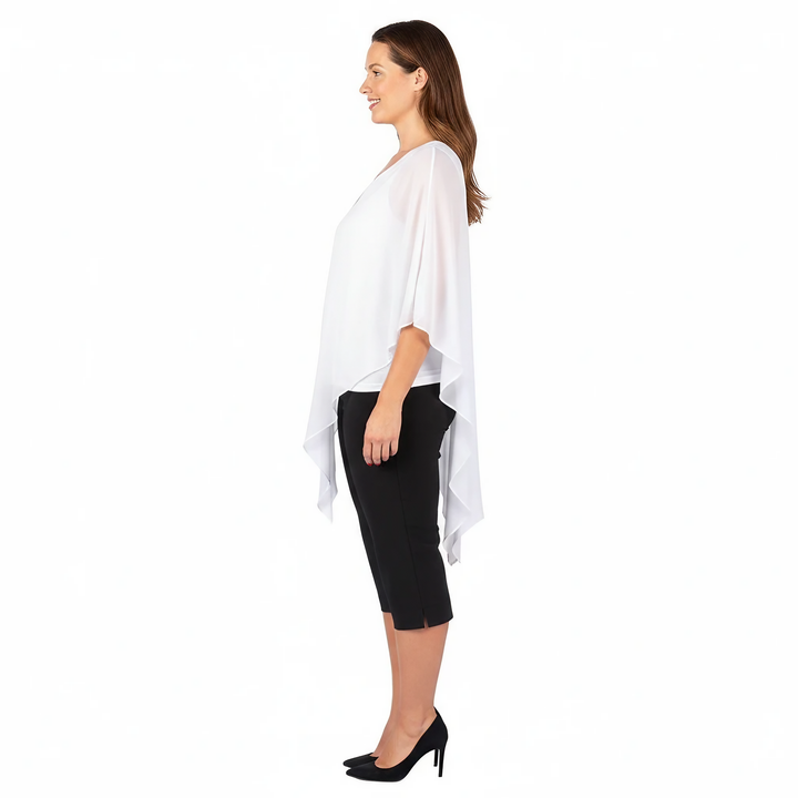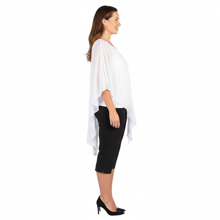 Make a sophisticated statement in this chiffon layered top that perfectly blends comfort and style. The vibrant color and flowing silhouette make it an ideal choice for special occasions, evening events, or adding a touch of drama to your everyday look.
