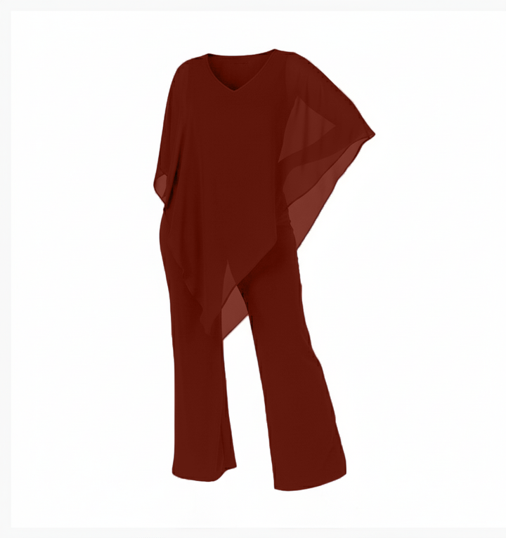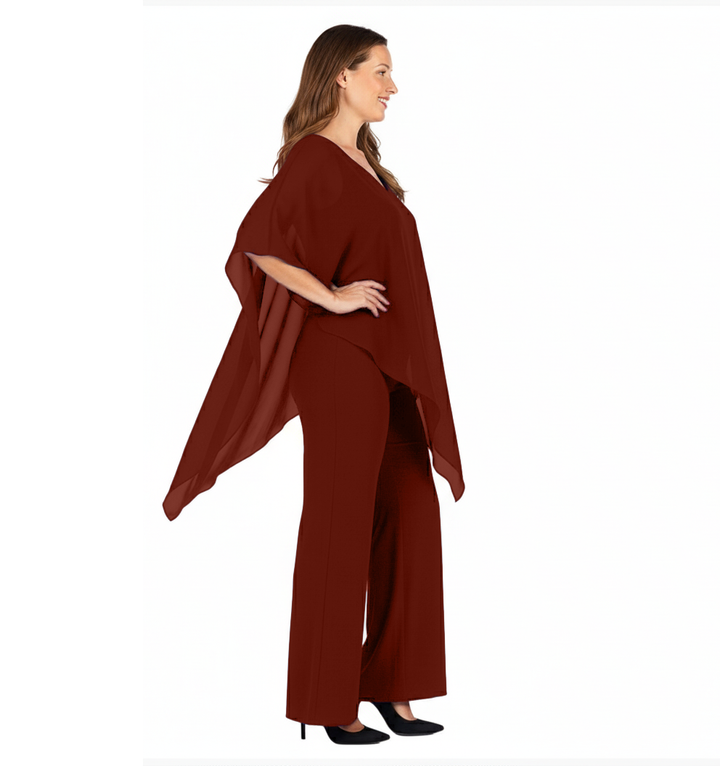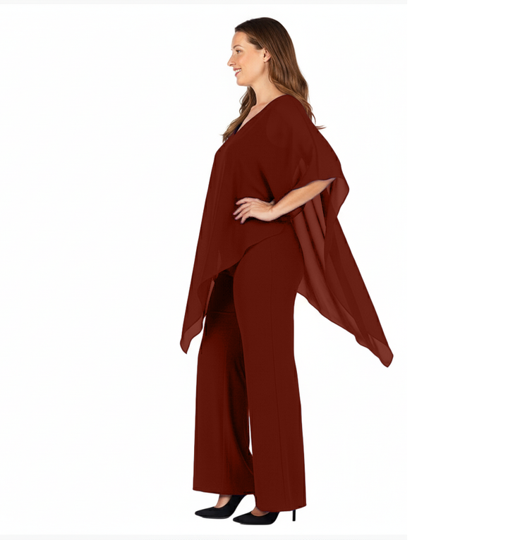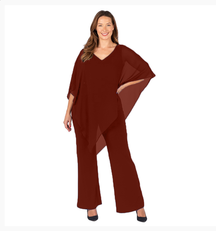 same shade of purple for a cohesive, elegant "jumpsuit" effect.