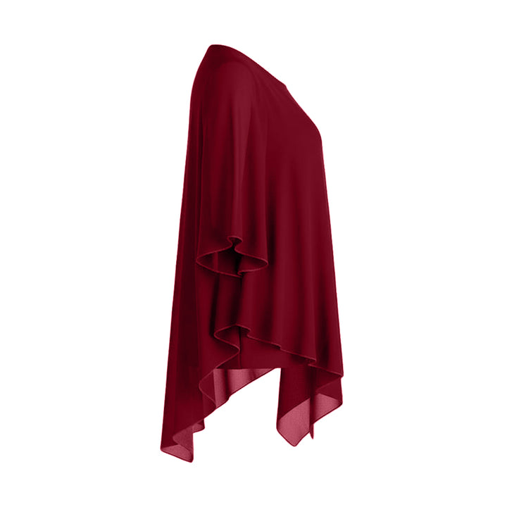 • Features: Asymmetric hem, flutter sleeves, round neckline, luxurious drape.