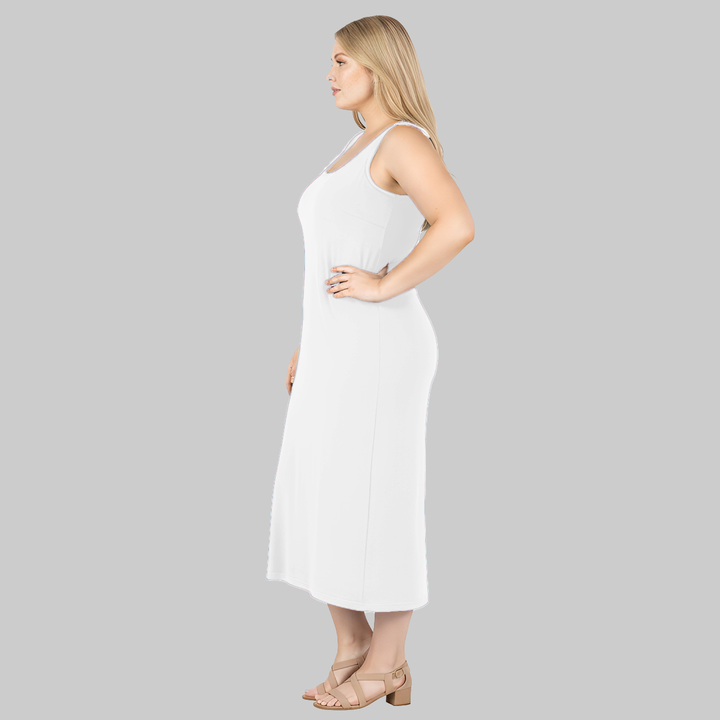 Discover your new go-to dress for unparalleled comfort and style! Our Soft Cloud-Soft Knit Maxi Dress drapes beautifully on the body, offering a sleek and flattering silhouette. Crafted from a luxurious and stretchy blend of 92% Polyester and 8% Elastane, this dress is exceptionally soft, breathable, and moves with you for all-day ease. The classic scoop-neck tank design and modest midi/maxi length make it a versatile foundation piece for any wardrobe.