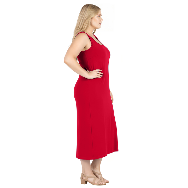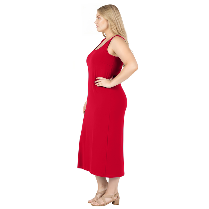 Discover your new go-to dress for unparalleled comfort and style! Our Soft Cloud-Soft Knit Maxi Dress drapes beautifully on the body, offering a sleek and flattering silhouette. Crafted from a luxurious and stretchy blend of 92% Polyester and 8% Elastane, this dress is exceptionally soft, breathable, and moves with you for all-day ease. The classic scoop-neck tank design and modest midi/maxi length make it a versatile foundation piece for any wardrobe.