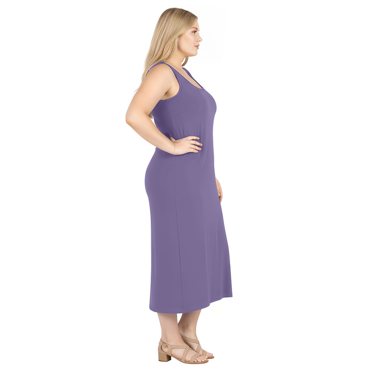 Discover your new go-to dress for unparalleled comfort and style! Our Soft Cloud-Soft Knit Maxi Dress drapes beautifully on the body, offering a sleek and flattering silhouette. Crafted from a luxurious and stretchy blend of 92% Polyester and 8% Elastane, this dress is exceptionally soft, breathable, and moves with you for all-day ease. The classic scoop-neck tank design and modest midi/maxi length make it a versatile foundation piece for any wardrobe.