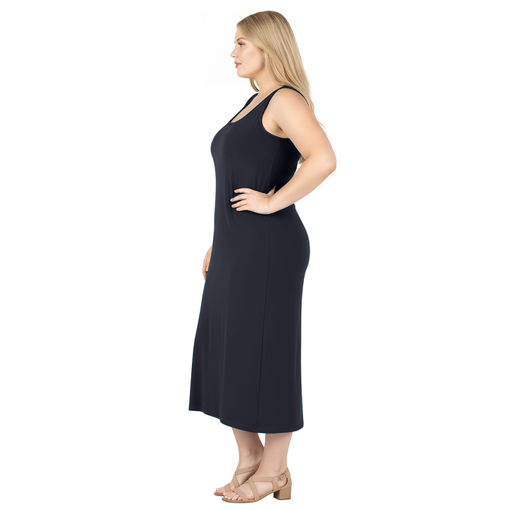 Discover your new go-to dress for unparalleled comfort and style! Our Soft Cloud-Soft Knit Maxi Dress drapes beautifully on the body, offering a sleek and flattering silhouette. Crafted from a luxurious and stretchy blend of 92% Polyester and 8% Elastane, this dress is exceptionally soft, breathable, and moves with you for all-day ease. The classic scoop-neck tank design and modest midi/maxi length make it a versatile foundation piece for any wardrobe.