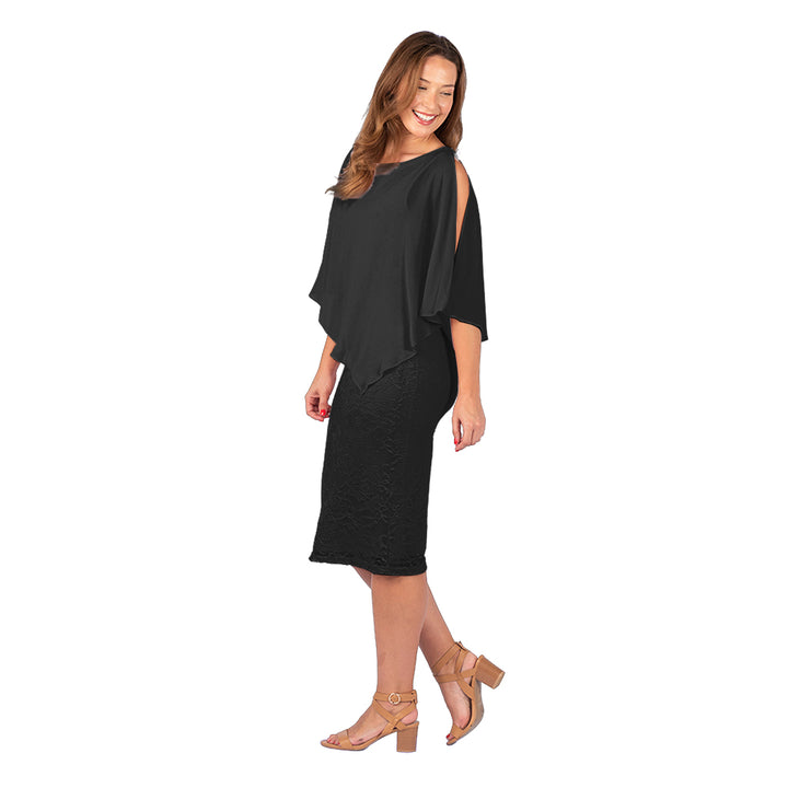 I love this dress because it is the definition of "fuss-free elegance." The soft, flowing overlay offers beautiful coverage and movement, while the underlying lace provides structure and sophisticated detail. It's a dress that makes you feel instantly polished and confident. No matter which bold hue you choose from our range of vibrant colours, the stretchy fabric ensures comfort, allowing you to enjoy your event without feeling restricted.