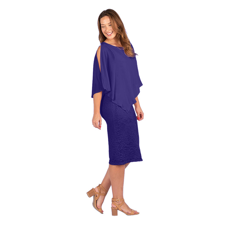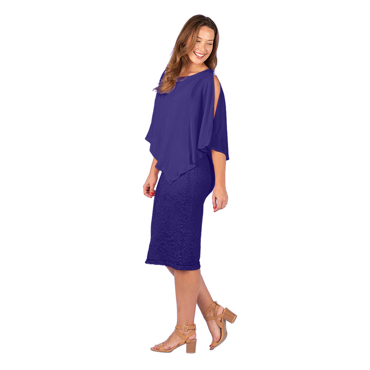 I love this dress because it is the definition of "fuss-free elegance." The soft, flowing overlay offers beautiful coverage and movement, while the underlying lace provides structure and sophisticated detail. It's a dress that makes you feel instantly polished and confident. No matter which bold hue you choose from our range of vibrant colours, the stretchy fabric ensures comfort, allowing you to enjoy your event without feeling restricted.