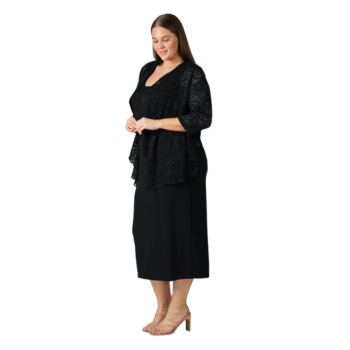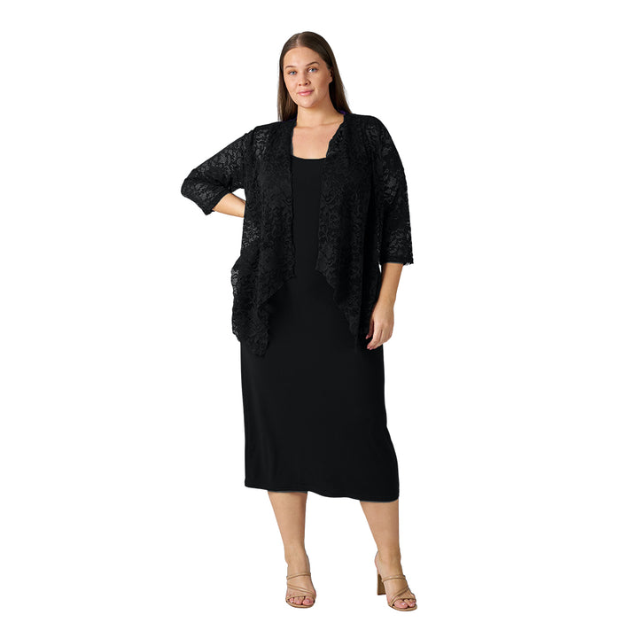The exquisite floral lace design provides an airy, sophisticated layer over a simple dress or top, transforming your outfit from ordinary to extraordinary. Its open-front waterfall design flatters every figure, while the three-quarter sleeves offer elegant coverage without feeling too heavy. Choose from our selection of multiple eye-catching colours to perfectly complement your ensemble!