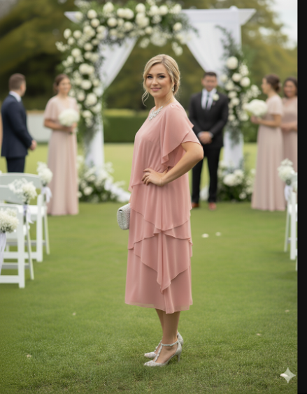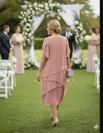 Flounce Layered Chiffon Dress - Elegant Wedding Guest Attire