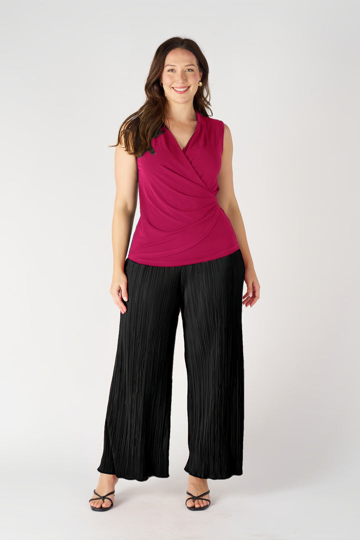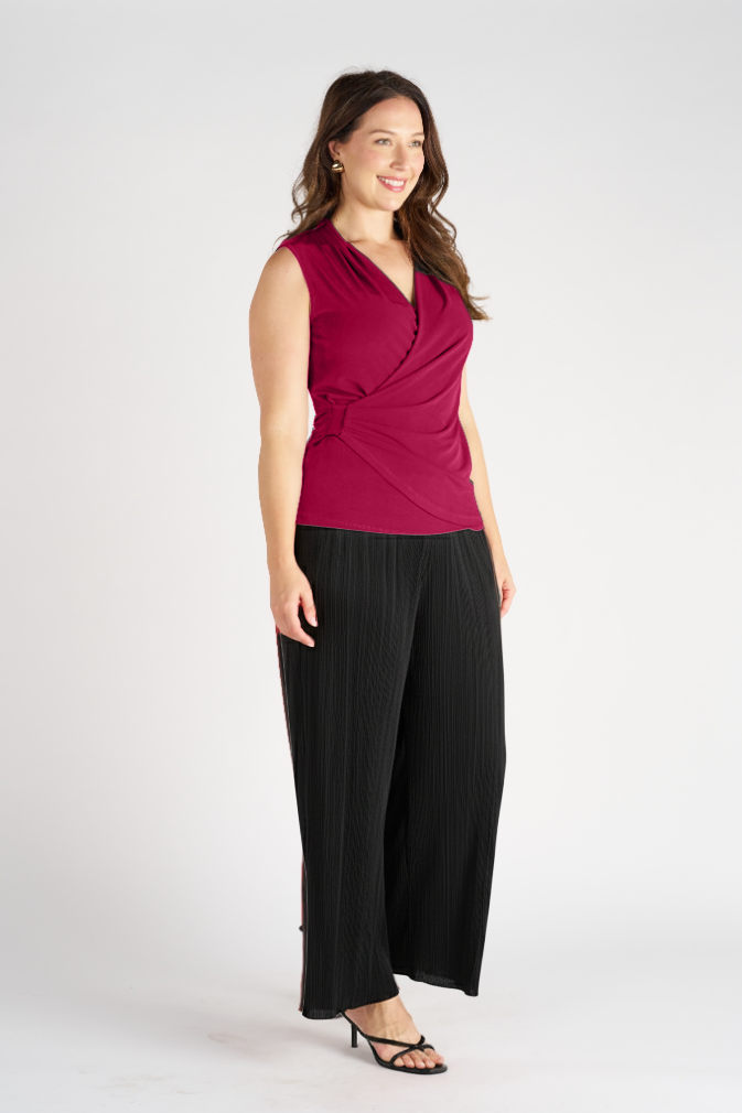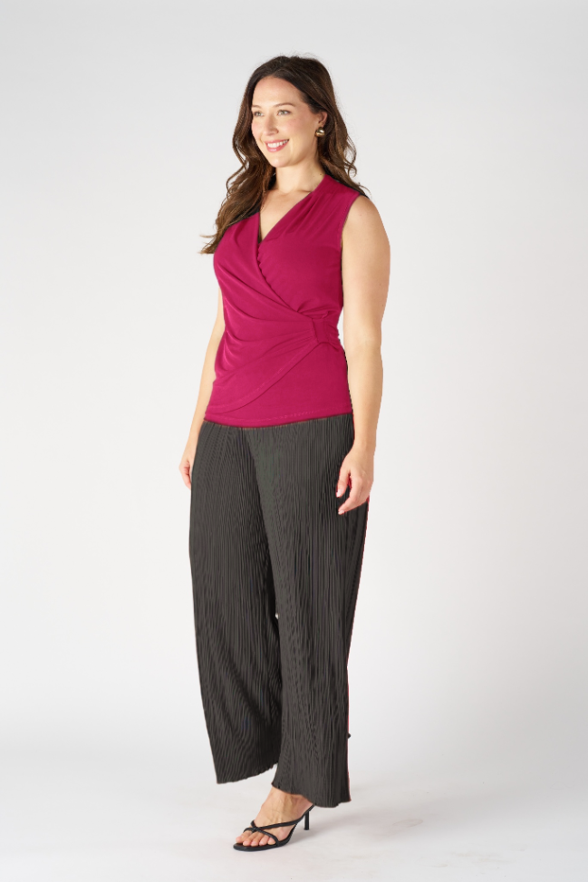 We're captivated by the effortless elegance this top brings to any wardrobe. The wrap-style front is incredibly flattering on all body types, creating a lovely defined waistline. The rich, vibrant colour that still feels incredibly chic and versatile. It's the perfect solution for those days when you need to look instantly pulled-together with minimal effort—just slip it on, and you're ready to go!
