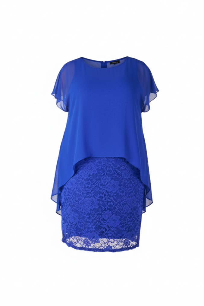 The inner layer is a beautifully tailored, fitted Lace Sheath Dress. The rich lace fabric provides texture and classic sophistication, while the internal lining is crafted from a smooth Polyester and Elastane blend. This ensures the dress moves with you and offers a comfortable, figure-flattering stretch.