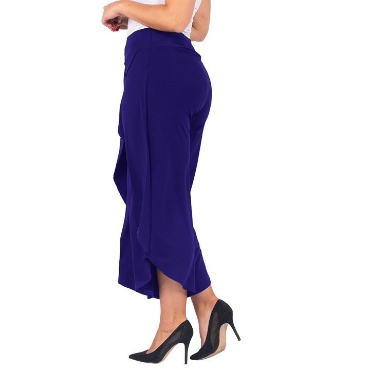 These stylish culottes offer the best of both worlds: the airy movement of a skirt with the practicality of trousers. The unique asymmetrical tulip hem and faux-wrap front create a graceful, flowing silhouette that flatters every figure. Whether you're dressing for a wedding or elevating your work-from-home look, these culottes are a versatile statement piece.