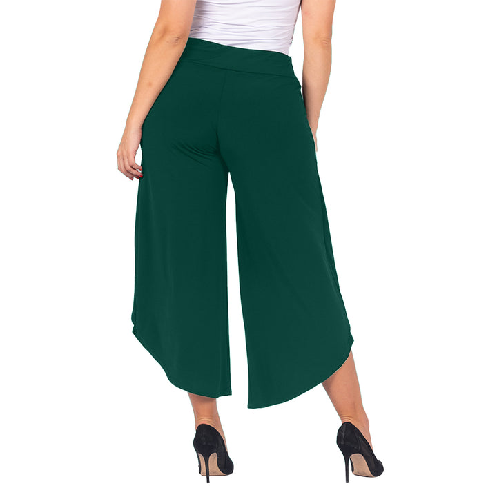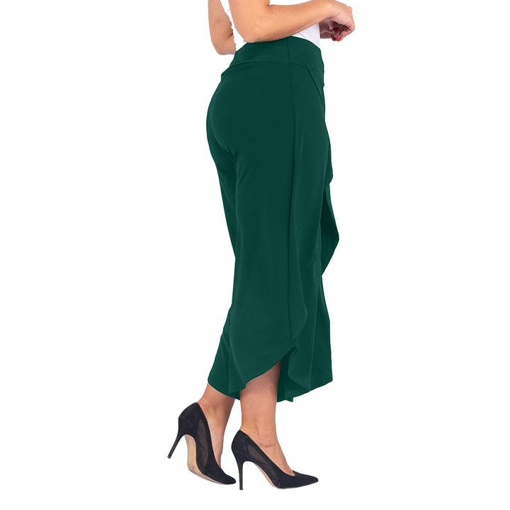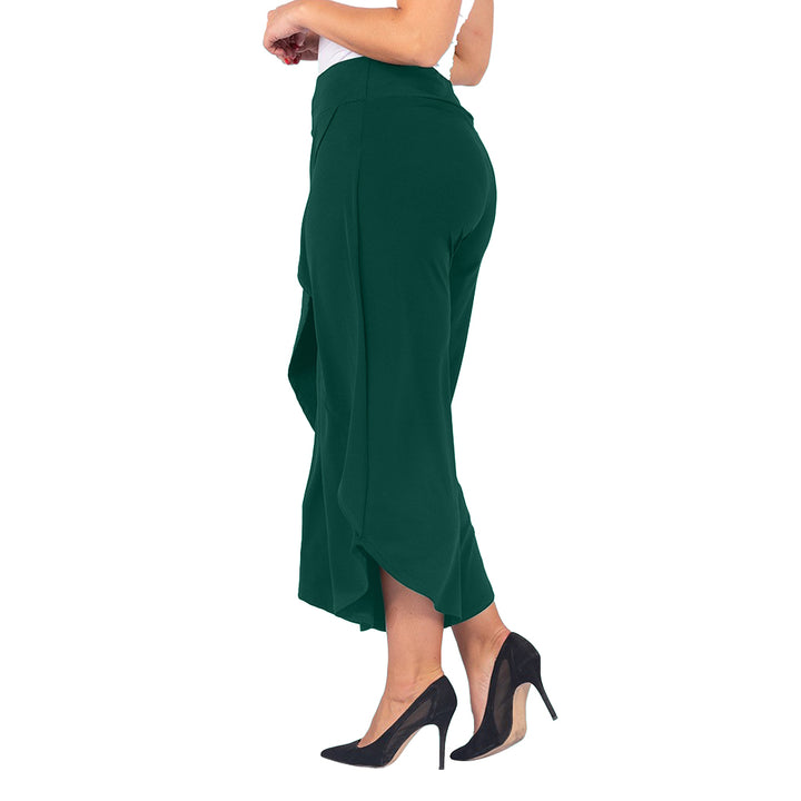 These stylish culottes offer the best of both worlds: the airy movement of a skirt with the practicality of trousers. The unique asymmetrical tulip hem and faux-wrap front create a graceful, flowing silhouette that flatters every figure. Whether you're dressing for a wedding or elevating your work-from-home look, these culottes are a versatile statement piece.