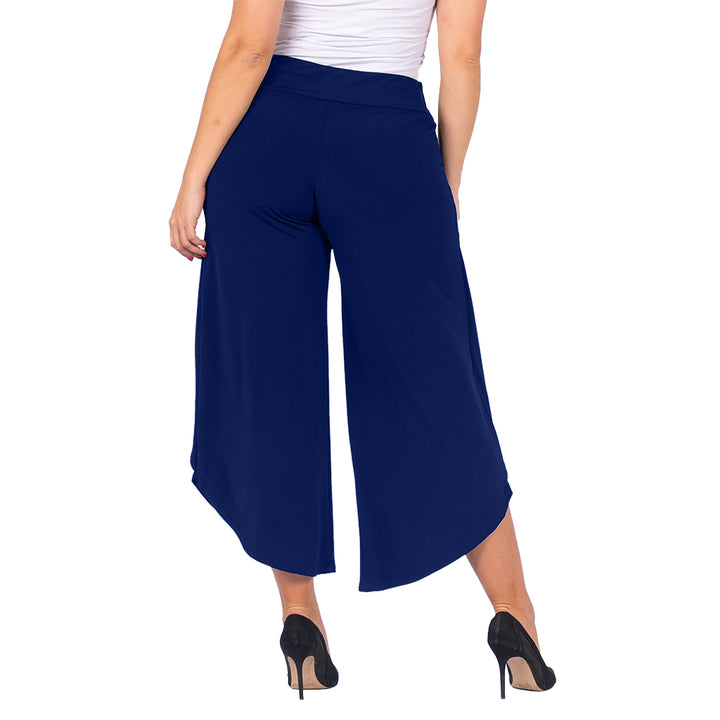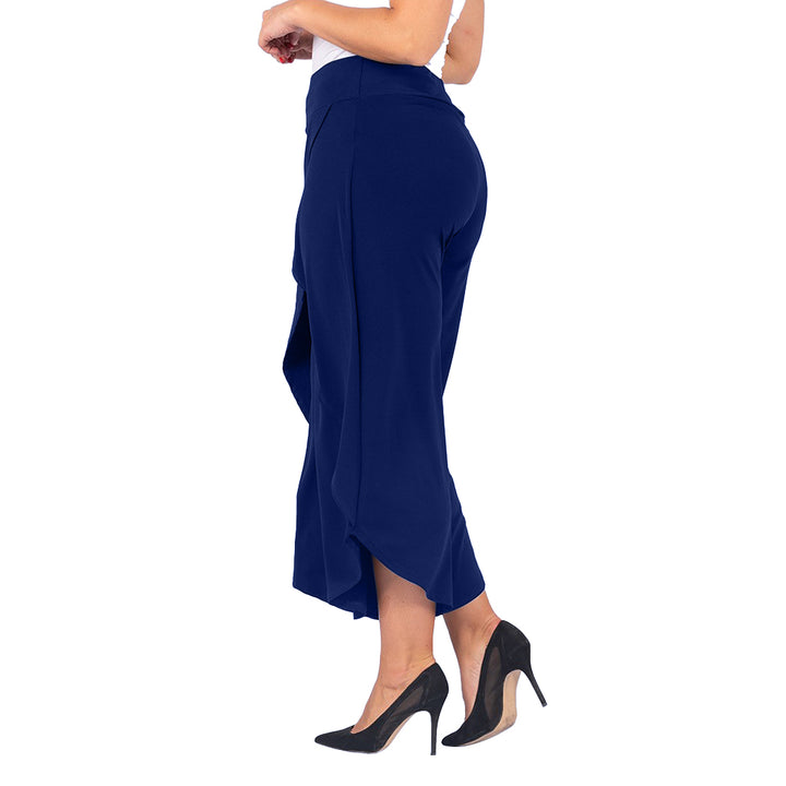 These stylish culottes offer the best of both worlds: the airy movement of a skirt with the practicality of trousers. The unique asymmetrical tulip hem and faux-wrap front create a graceful, flowing silhouette that flatters every figure. Whether you're dressing for a wedding or elevating your work-from-home look, these culottes are a versatile statement piece.