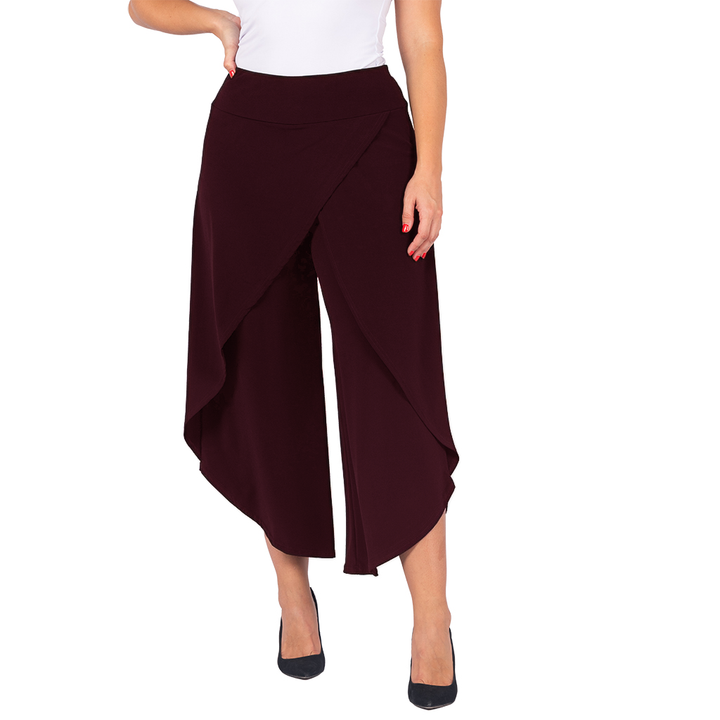These stylish culottes offer the best of both worlds: the airy movement of a skirt with the practicality of trousers. The unique asymmetrical tulip hem and faux-wrap front create a graceful, flowing silhouette that flatters every figure. Whether you're dressing for a wedding or elevating your work-from-home look, these culottes are a versatile statement piece.