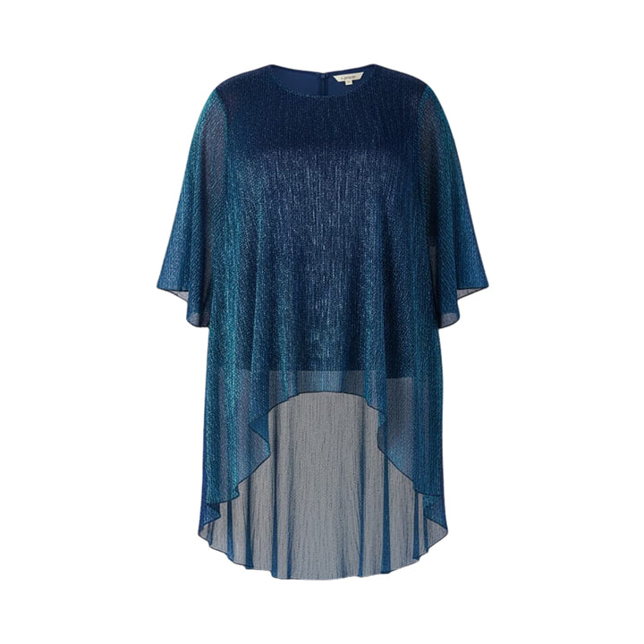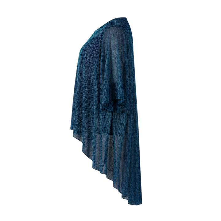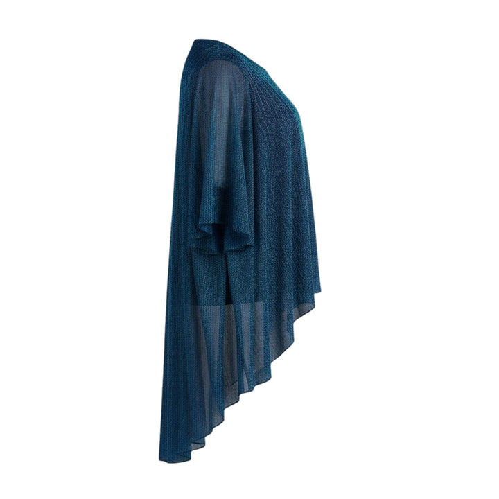 The flattering batwing sleeves and relaxed, flowing fit offer exceptional comfort and style, effortlessly draping over your figure. Its unique asymmetric hemline dips to one side, creating a modern silhouette that pairs perfectly with a fitted skirt or trousers. Fully lined for a smooth fit, this top is the epitome of effortless glamour.