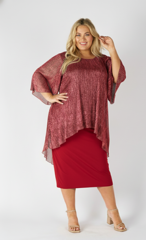 The flattering batwing sleeves and relaxed, flowing fit offer exceptional comfort and style, effortlessly draping over your figure. Its unique asymmetric hemline dips to one side, creating a modern silhouette that pairs perfectly with a fitted skirt or trousers. Fully lined for a smooth fit, this top is the epitome of effortless glamour.