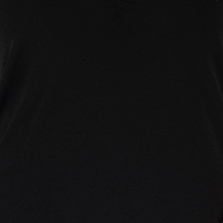 The elegant V-neckline features subtle ruching at the bust, providing a beautiful, flattering silhouette and gentle definition without being restrictive. The longline design offers versatile coverage, making it perfect for layering or wearing on its own.