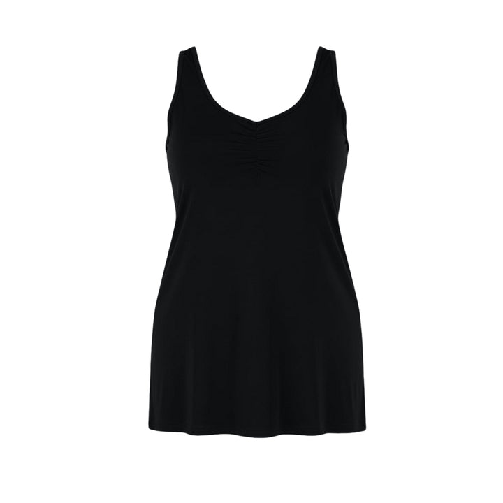 We're obsessed with this singlet because it solves the "nothing to wear" dilemma instantly! The super-soft fabric feels amazing against the skin, and the hint of elastane means it moves with you, never pulling or riding up. The sophisticated ruching elevates it above a standard tank, allowing you to go from casual to chic with a simple change of accessories. It's the ultimate blend of comfort, coverage, and feminine style.