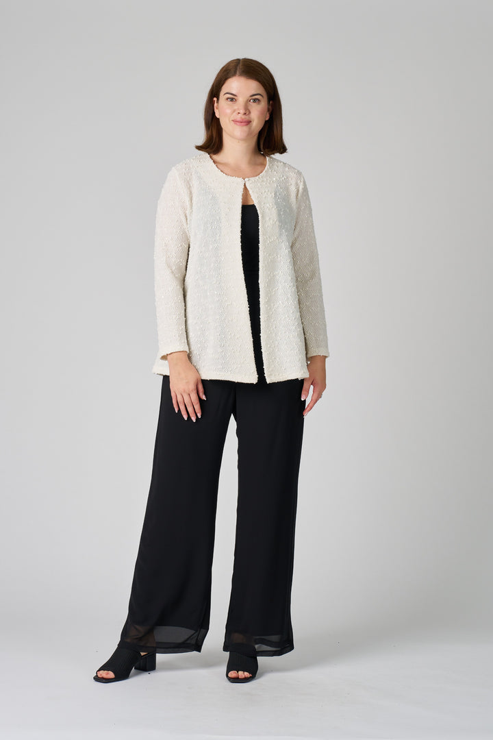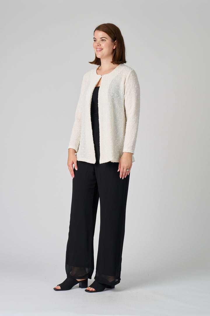 Stay cozy and stylish with our Textured Sequin Jacket/Cardi, a luxurious layering piece designed to elevate any look. This exquisite jacket is made from a soft fabric richly adorned with subtle, shimmering sequins, adding warmth and glamorous dimension to any outfit.