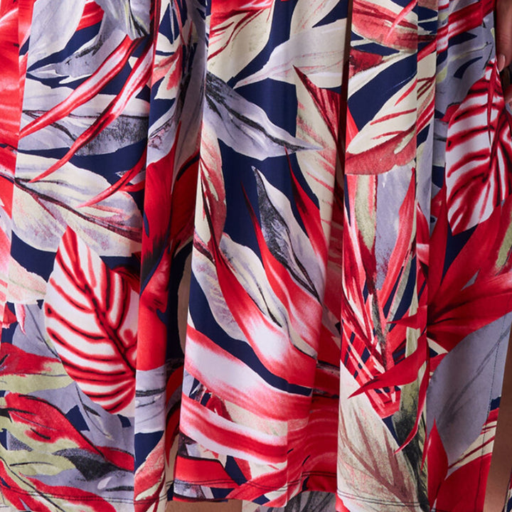 We absolutely love this dress because it's the definition of effortless chic. The rich, vibrant print makes a statement, ensuring you look put-together with minimal effort. The flowy fit is flattering on all shapes, and the inclusion of pockets is the perfect blend of fashion and function. Made from a durable, easy-care Polyester and Elastane blend, it offers the perfect amount of stretch and holds its shape beautifully—it's a wrinkle-resistant, travel-friendly dream.