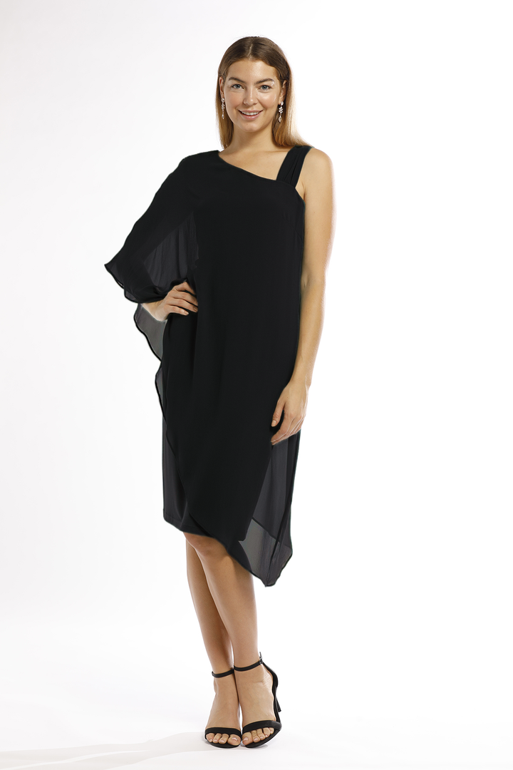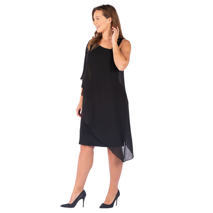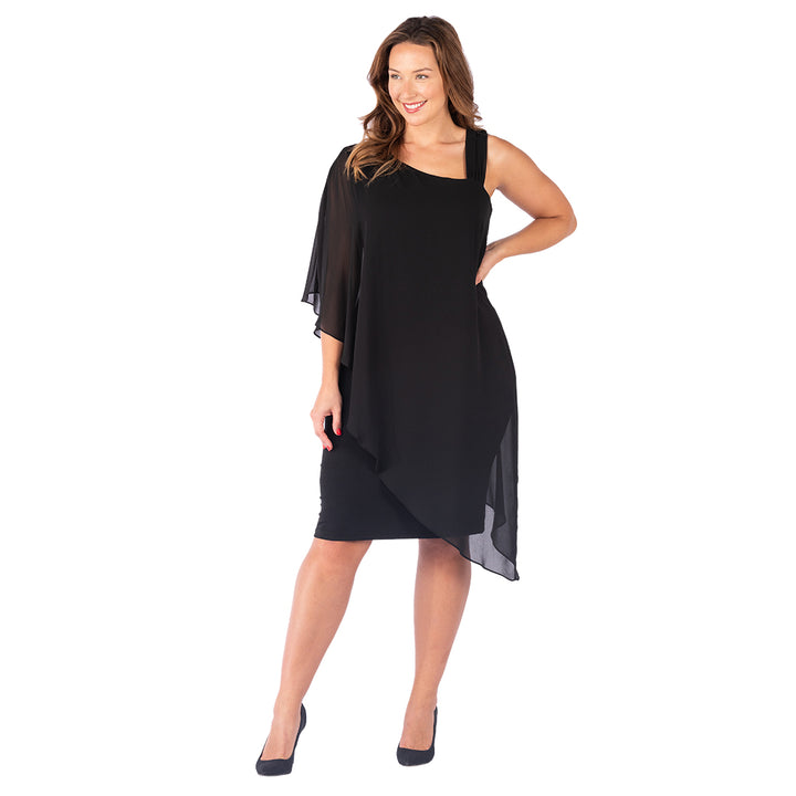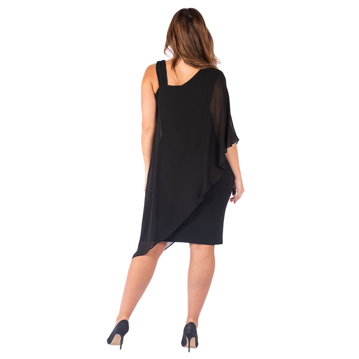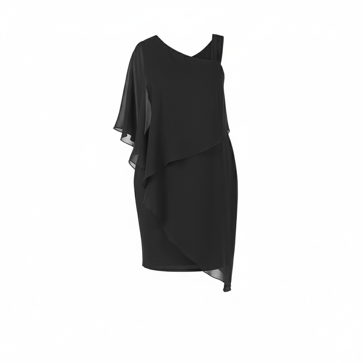 • Chic Asymmetry: The one-shoulder design and handkerchief hemline of the overlay provide a modern, eye-catching detail.